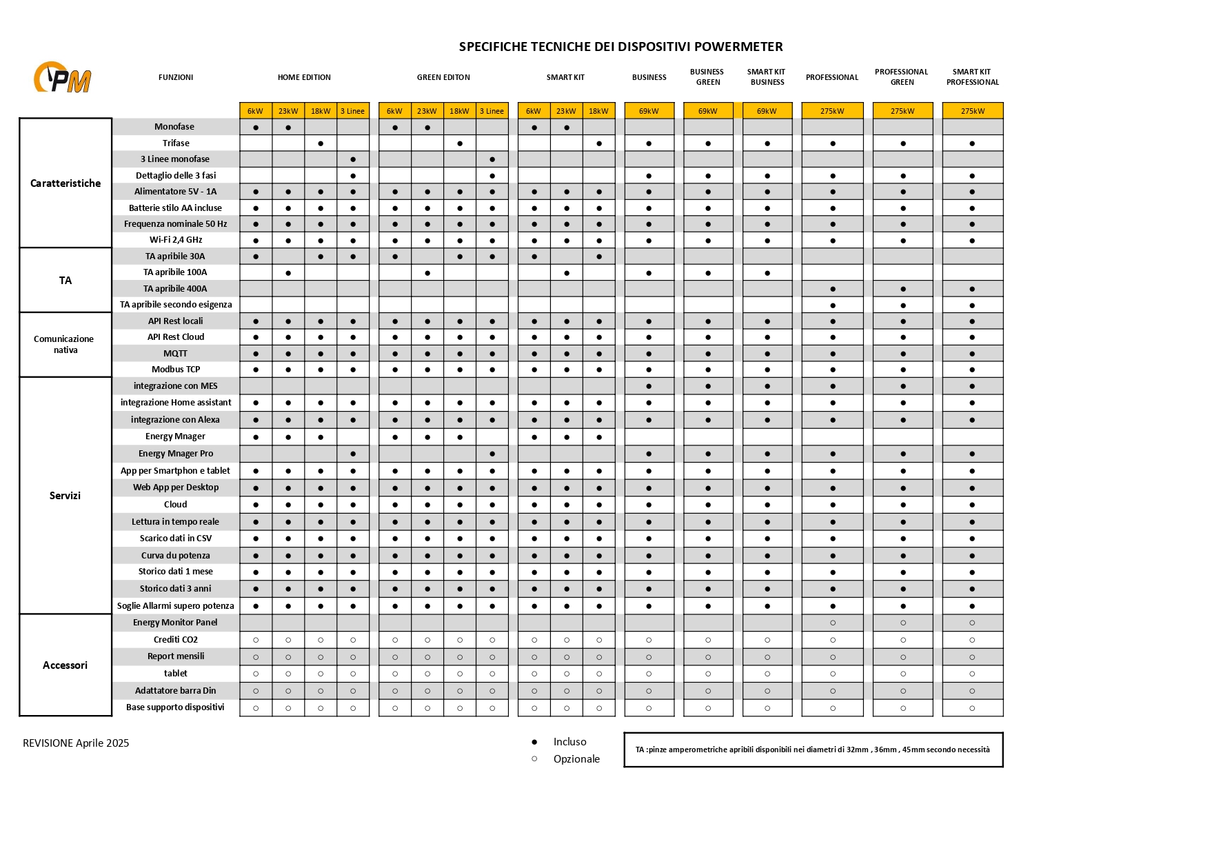 Confronta tutti i modelli PowerMeter in una tabella veloce e chiara: scopri versioni, funzioni e prestazioni per individuare subito il dispositivo giusto per te.